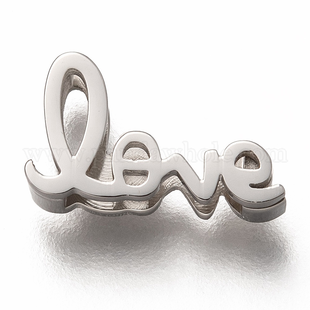 • Нержавеющая Сталь Цвет Не тускнеет 304 подвески-слайдеры из нержавеющей стали, на день Святого Валентина, Слово любовь, цвет нержавеющей стали, 12.5x7x3.5 мм, отверстие : 8x1.5 мм