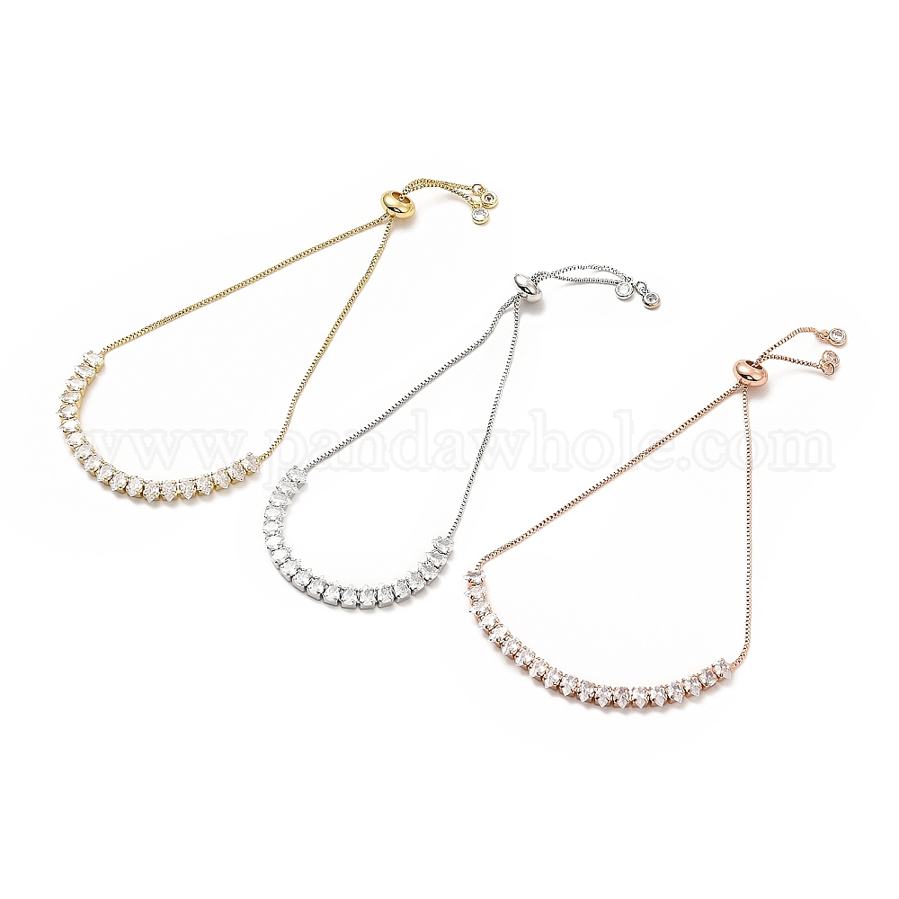 Регулируемая стойка с покрытием из латуни кубический цирконий и браслеты-цепочки, слайдер браслет для женщин, без свинца и без кадмия, долговечный