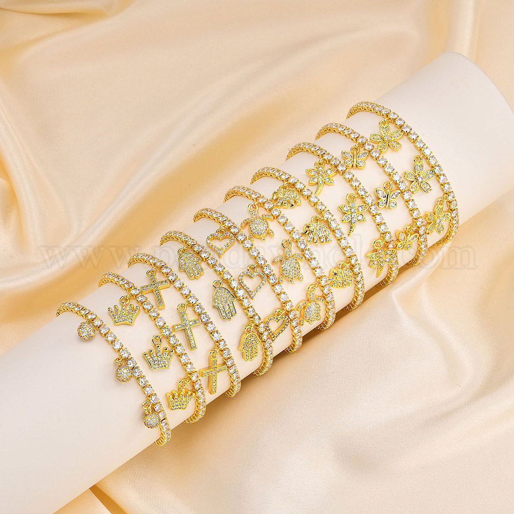 Регулируемые браслеты-слайдеры из золотой нержавеющей стали с микропаве и фианитами, браслеты с подвесками для женщин