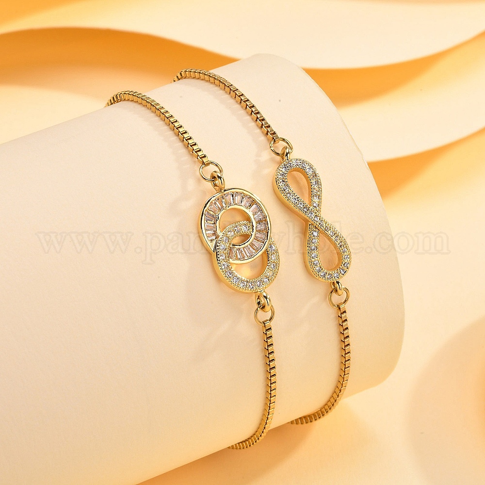 Регулируемые браслеты с цепочкой из латуни, браслет с звеньями прозрачного циркония для женщин