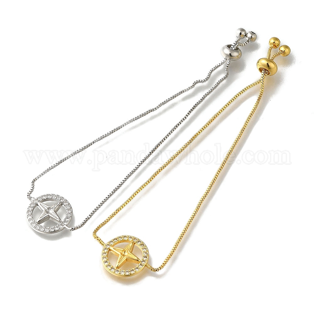 Покрытие стойки, латунное микро-паве, прозрачный кубический цирконий, кольцо-цепочка со звездообразным звеном, браслеты-слайдеры, без свинца и без кадмия, долговечный