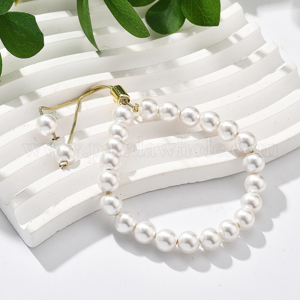 Долговечные браслеты-слайдеры из латунных бусин с покрытием для женщин, с пластиковой бисера, круглые