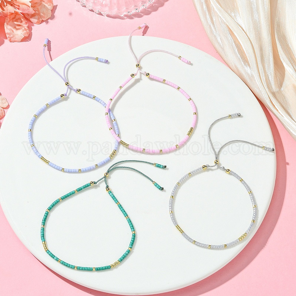5шт. регулируемые стеклянные цилиндрические бусины слайдер браслет наборы, с латунной бисера