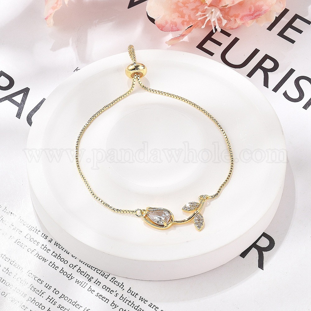 Латунные браслеты-слайдеры с микропаве из прозрачного кубического циркония, браслеты-цепочки для женщин, цветок