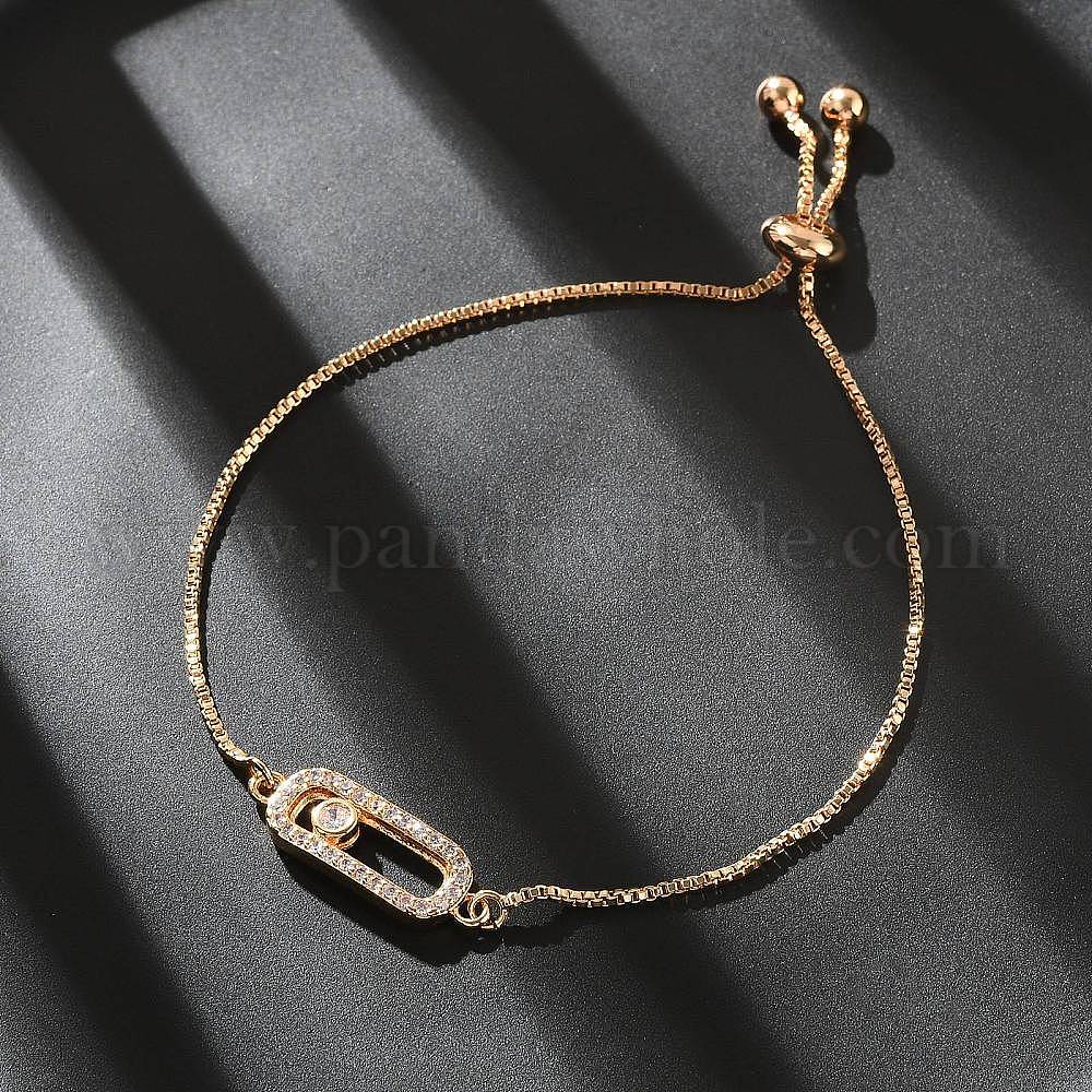 Овальные прямоугольные латунные браслеты со звеньями-слайдерами из микропаве из кубического циркония, без кадмия и без свинца, долговечный