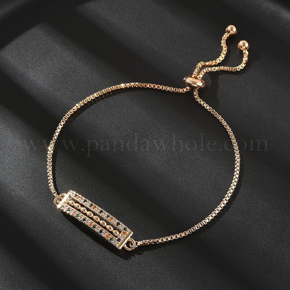 Прямоугольные латунные браслеты со звеньями-слайдерами из микропаве из кубического циркония, без кадмия и без свинца, долговечный
