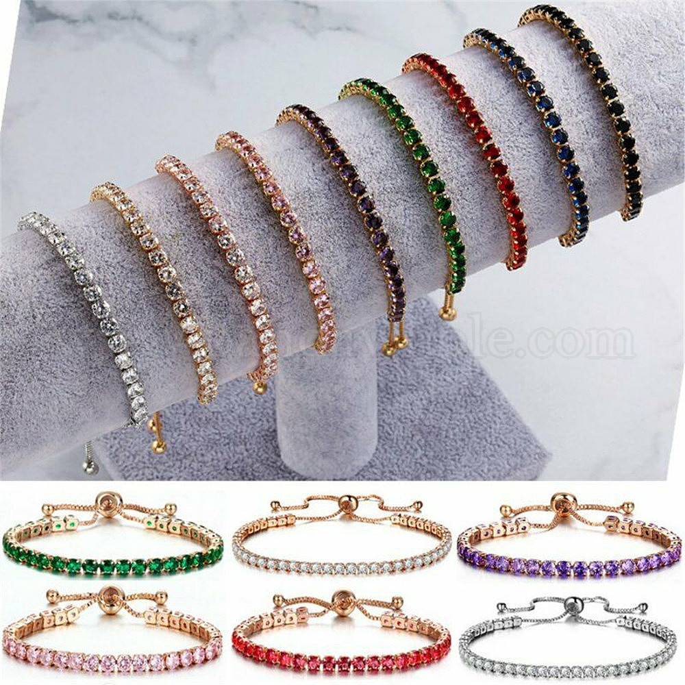 • Прозрачный Регулируемые браслеты-слайдеры из сплава, кубические циркониевые украшения для женщин, квадратный, платина, прозрачные, 9-1/8 дюйм (23 см)