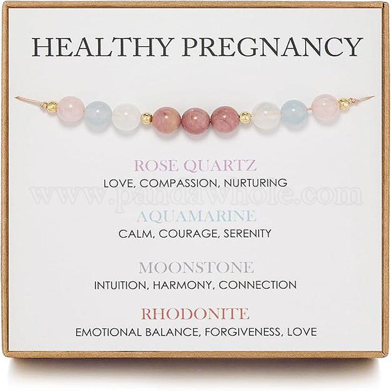 Регулируемые браслеты-слайдеры из натурального розового кварца, аквамарина, лунного камня и родонита с круглыми бусинами для здоровой беременности в подарок