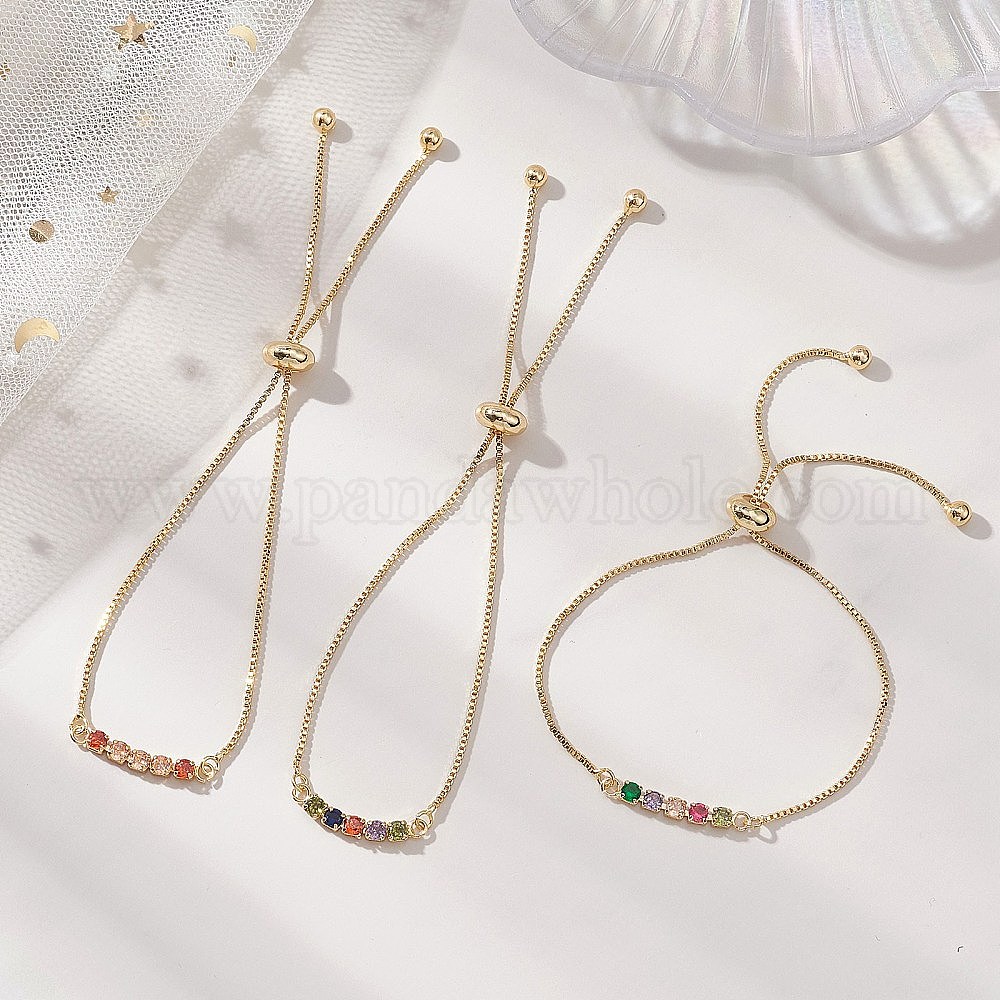 Латунные браслеты-слайдеры с кубическими циркониями, золотые