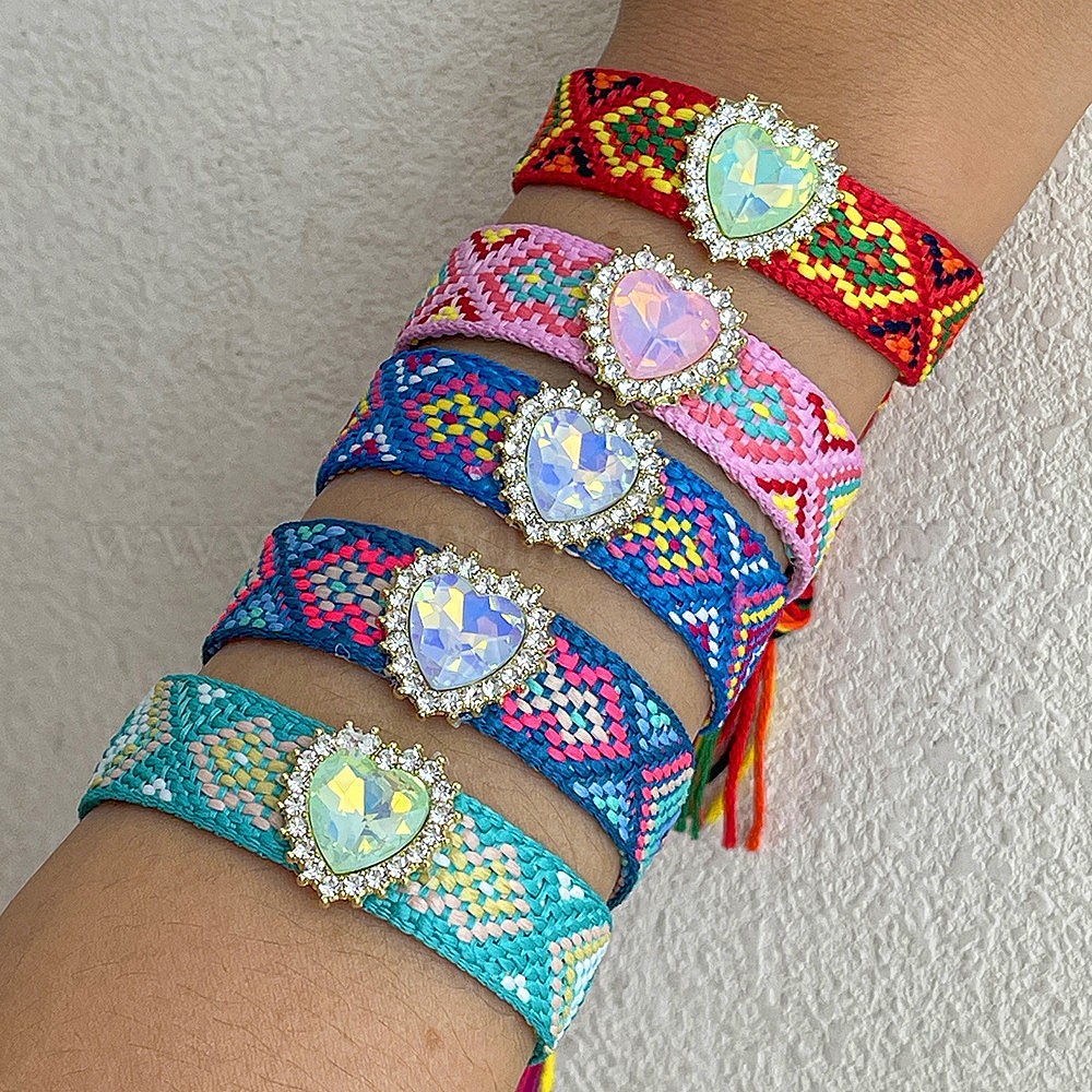 Регулируемые браслеты-слайдеры из хлопка и сплава с сердечками и стразами., браслеты макраме для женщин, с кистями