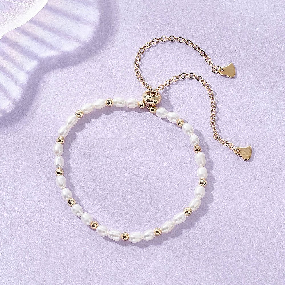 Натуральные искусственные пресноводные и латунные браслеты-слайдеры, 304 Браслеты из латунных цепочек для женщин, рис, кремово-белые