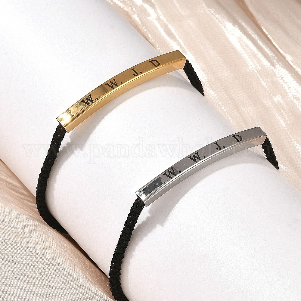 Браслеты-слайдеры из плетеного полиэстерного шнура, 304 браслеты с подвесками из нержавеющей стали для женщин и мужчин, трубка со словом wwjd