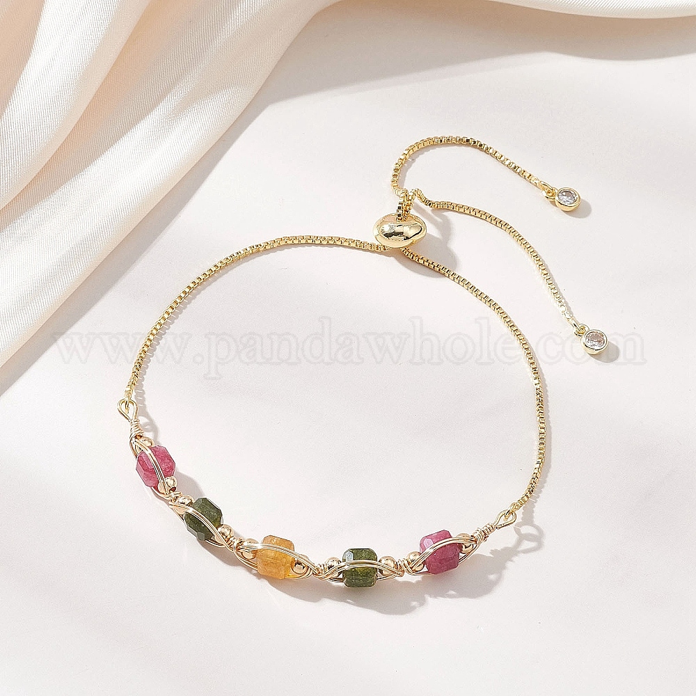 Браслеты-слайдеры из натуральных кубических бусин турмалина, Регулируемые латунные браслеты-цепочки для женщин, реальный 18 k позолоченный