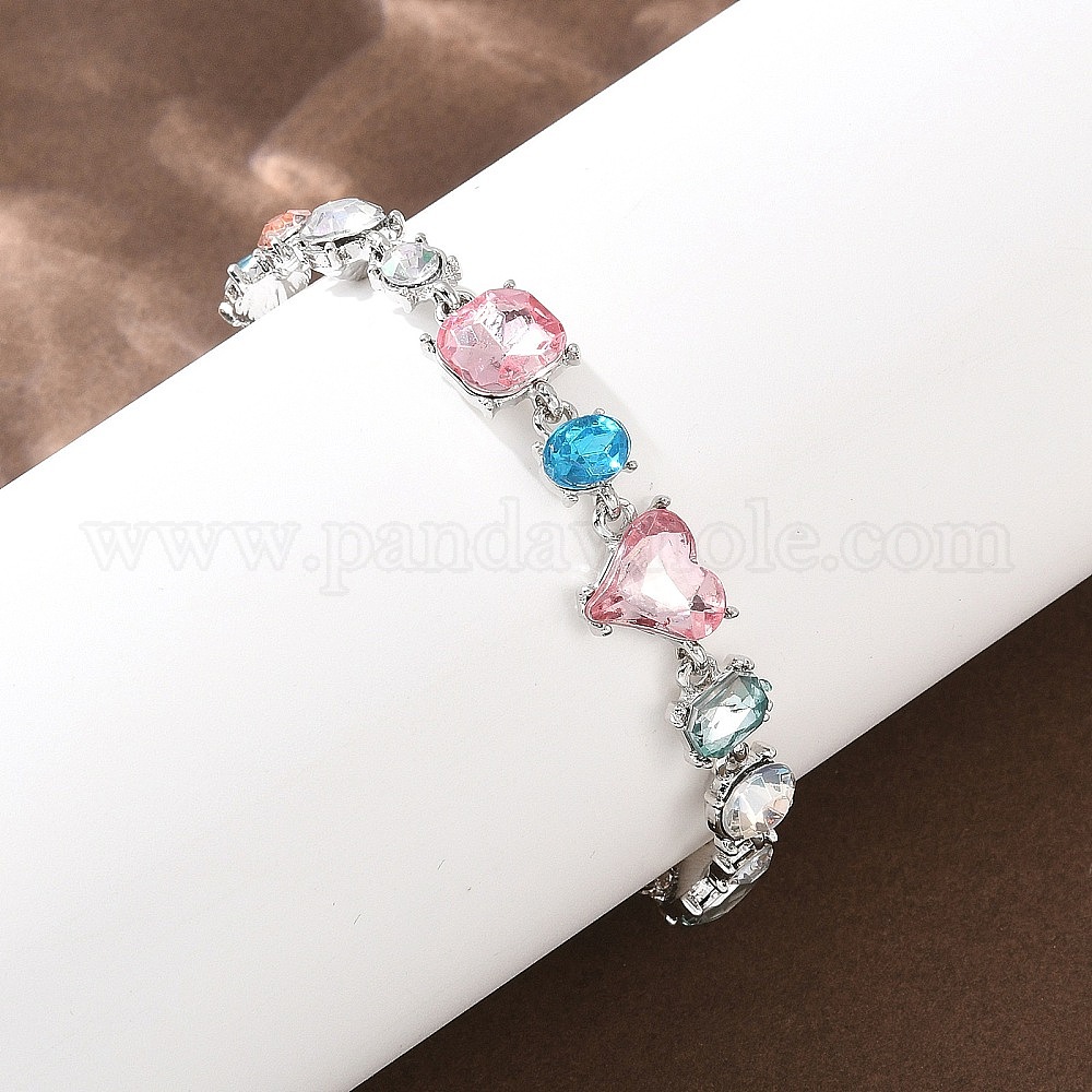 • Платина Браслеты-слайдеры из сплава со стразами, браслеты из железного троса для женщин, Сердце и квадрат, платина, 35.83 дюйм (91 см)