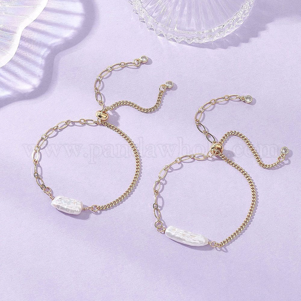 Браслеты-слайдеры из натуральных бусин жемчуга кеши, Браслеты из латуни в виде цепочек якорного и фигаро для женщин (03A5MT)