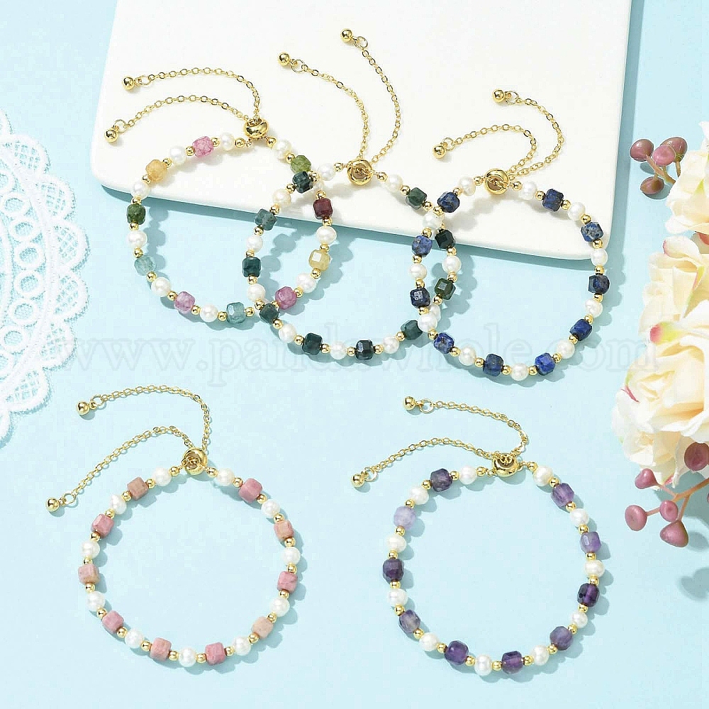 Регулируемые браслеты-слайдеры для женщин с натуральными драгоценными камнями и культивированным пресноводным жемчугом., куб и самородки