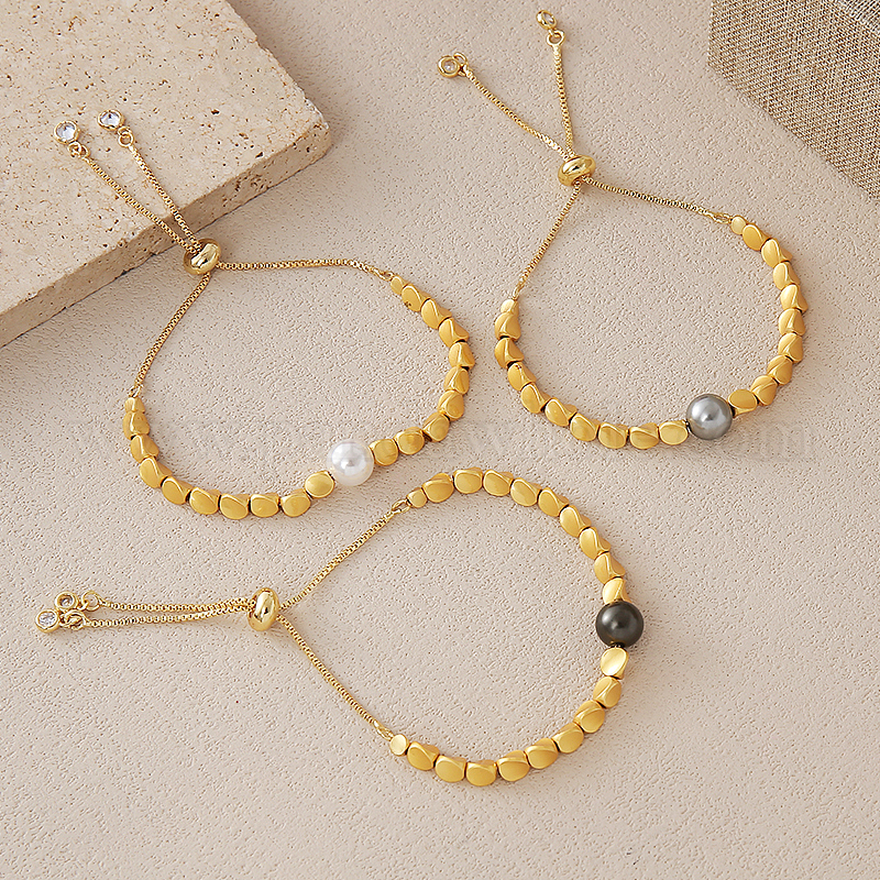 Регулируемые браслеты с цепочкой из латуни, Браслеты из витых латунных бусин и бусин из искусственного жемчуга для женщин