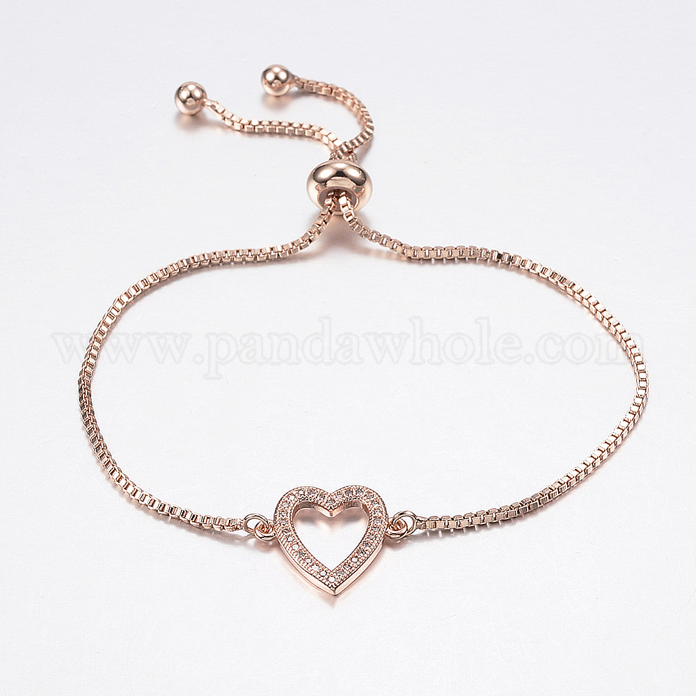 Регулируемые латунные браслеты Боло, слайдерные браслеты, с фианитом и цепочками, сердце