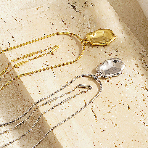 304 двухслойные ожерелья из круглой змеиной и звеньевой цепи из нержавеющей стали, с овальной подвеской-поворотом