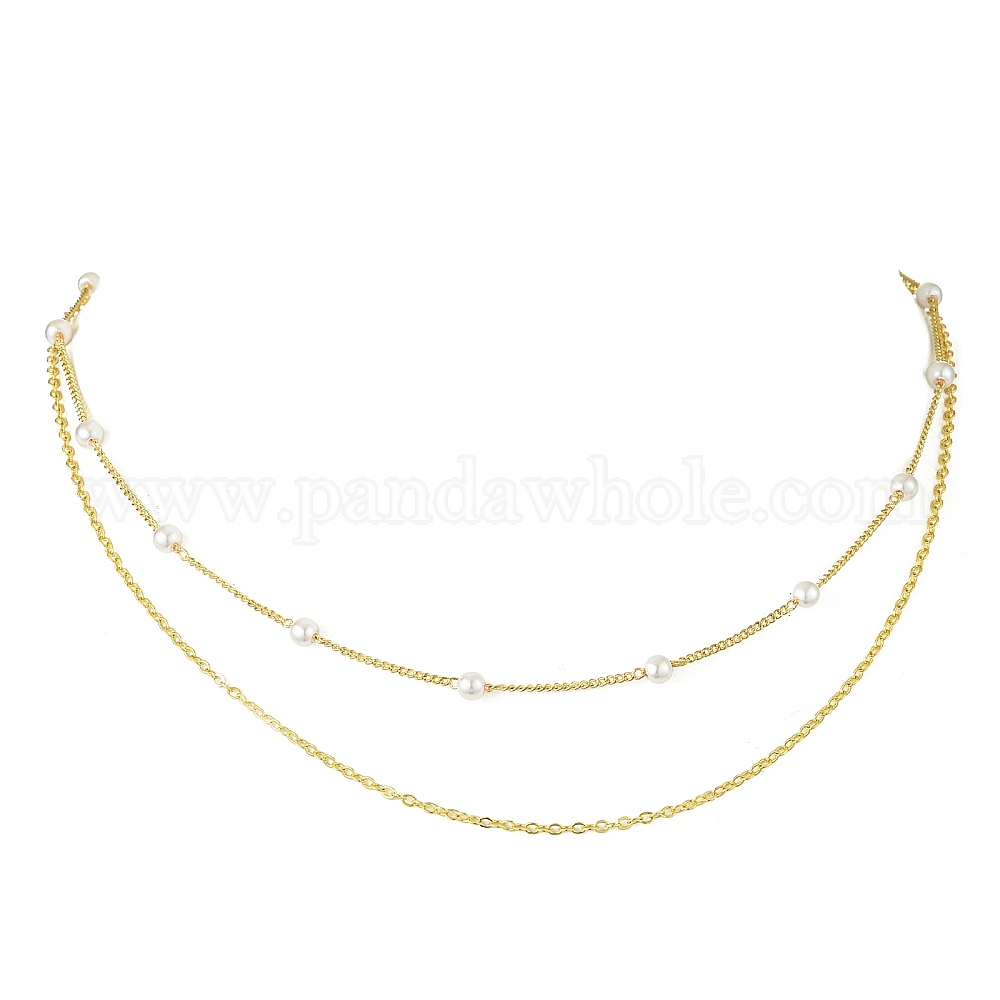 Женское многослойное колье из латуни и АБС-пластика с имитацией жемчуга
