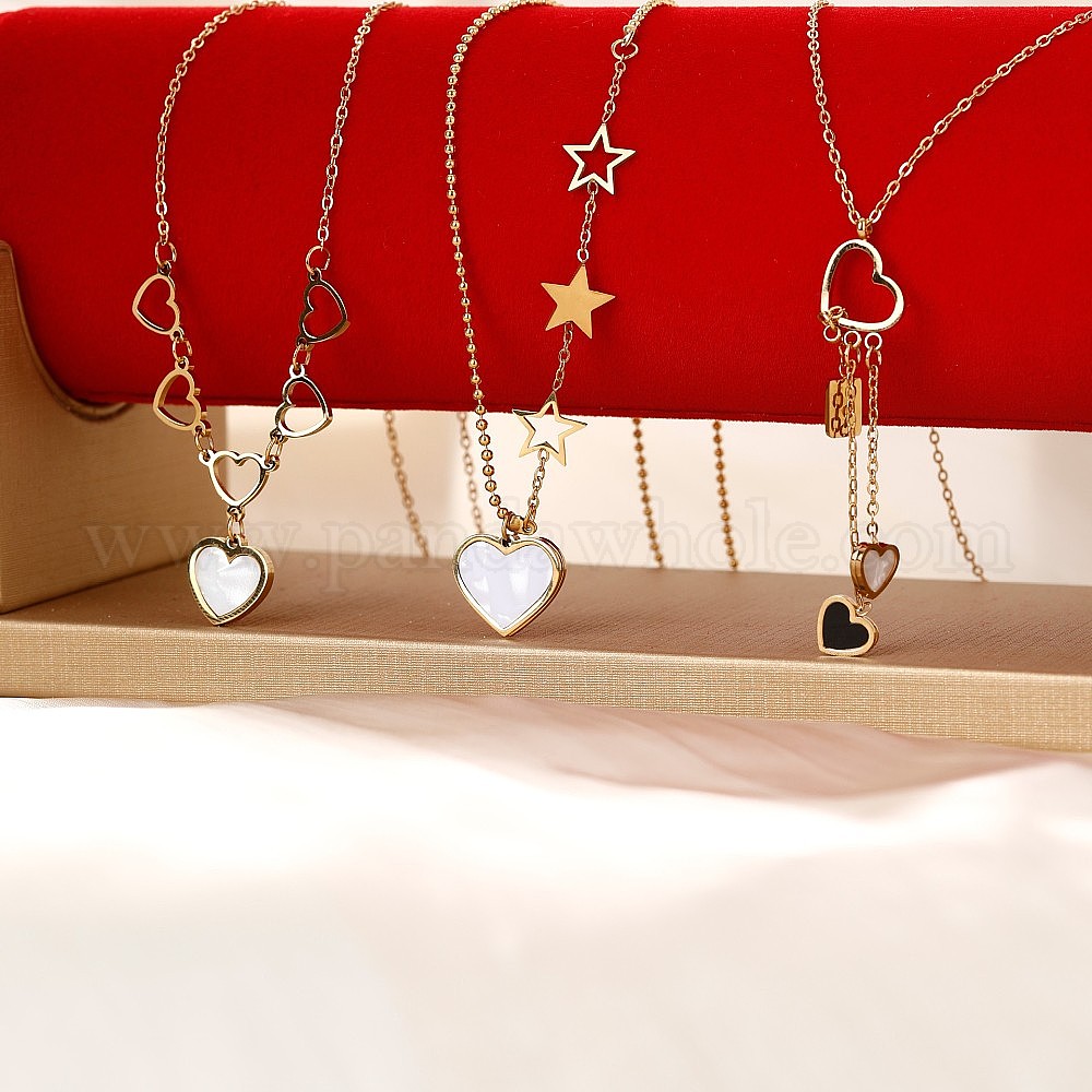Стильные 304 ожерелья с подвеской в форме сердца из нержавеющей стали и пластика, с тросовой цепью/шариковой цепью для женщин и девочек (02WCP3)