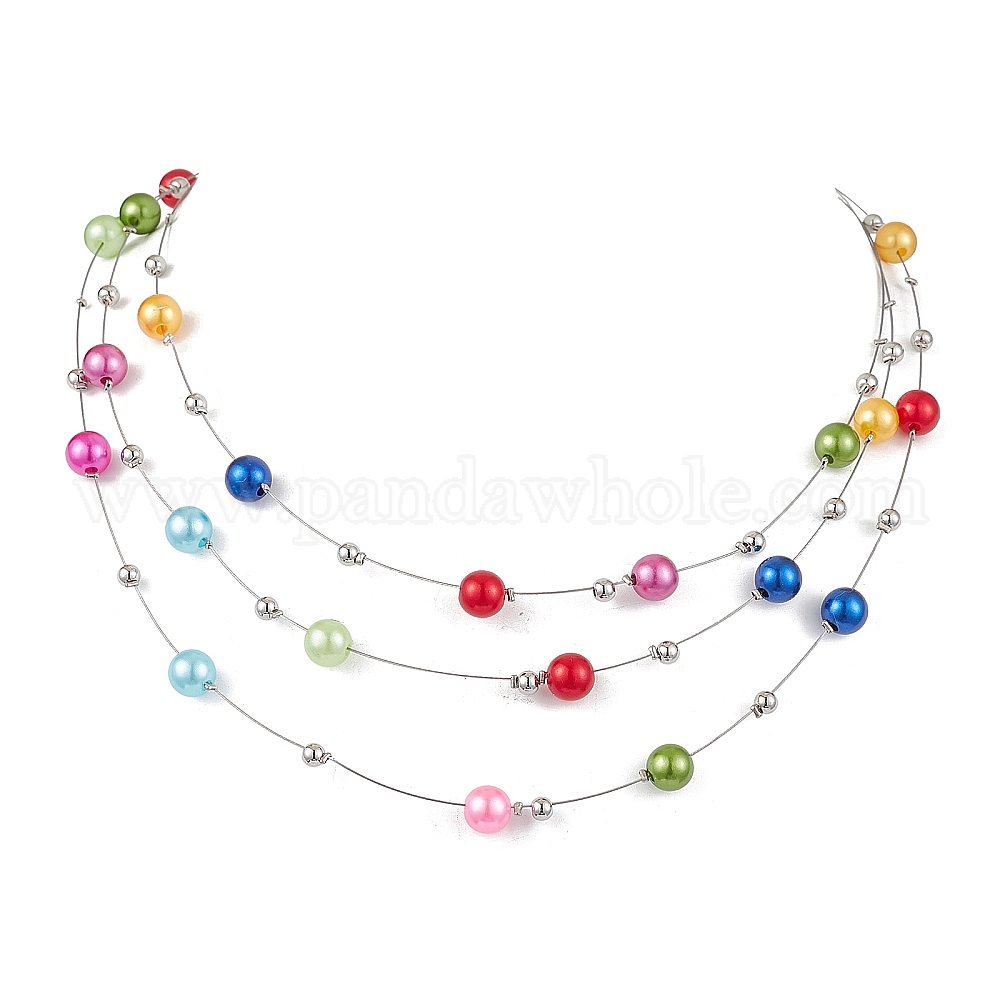Ожерелья из нержавеющей стали с нейлоновым покрытием 3 слоя, с абс пластмассовыми жемчужными бисером, круглые