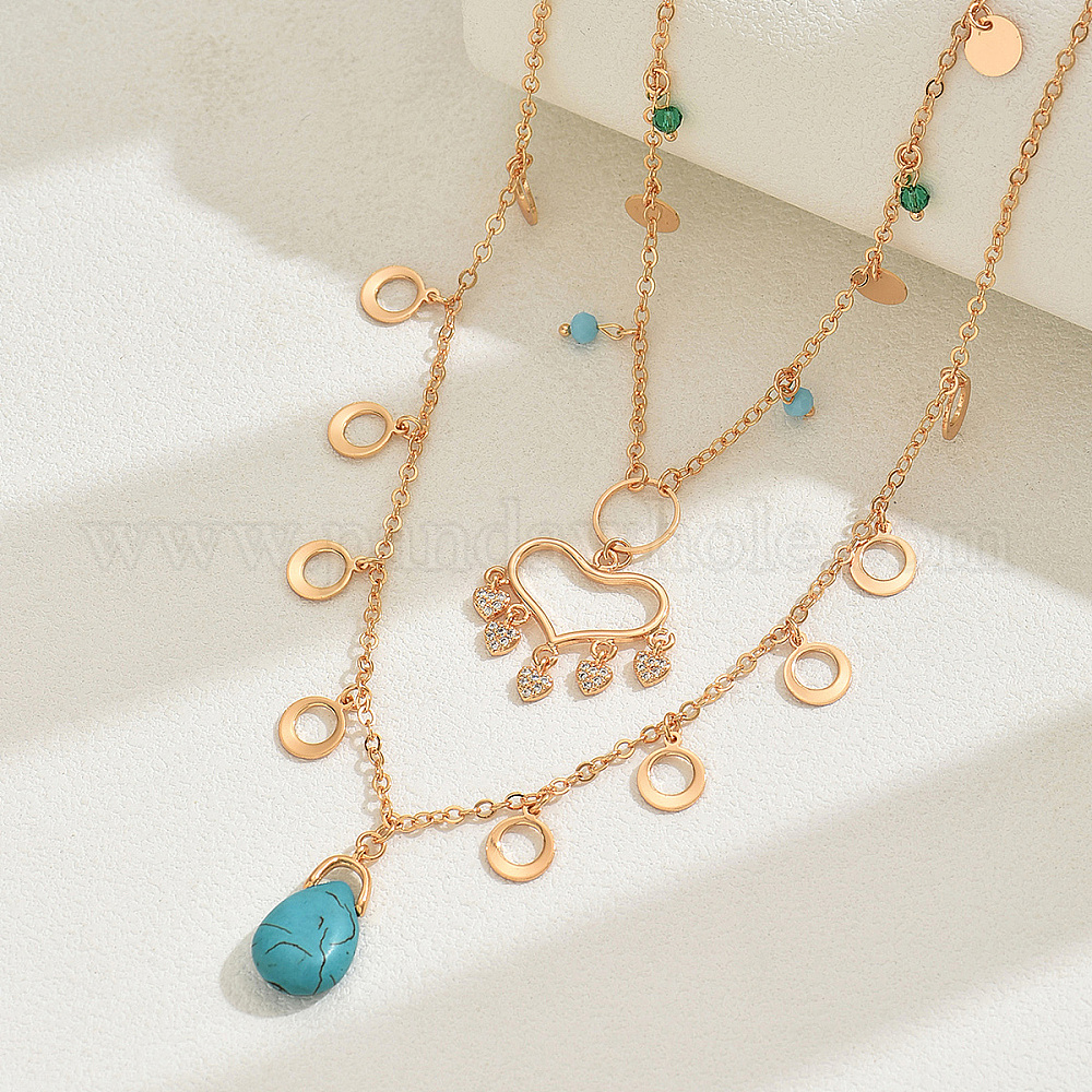 Двухслойные ожерелья из натуральной бирюзы в форме капли, латунные хрустальные ожерелья с подвеской в виде сердца из горного хрусталя для женщин
