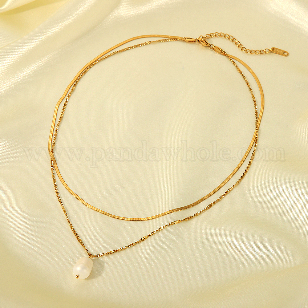 Естественных пресноводных жемчуг подвеска колье, двухслойные ожерелья из цепочек-"елочек" и "панцирных" для женщин