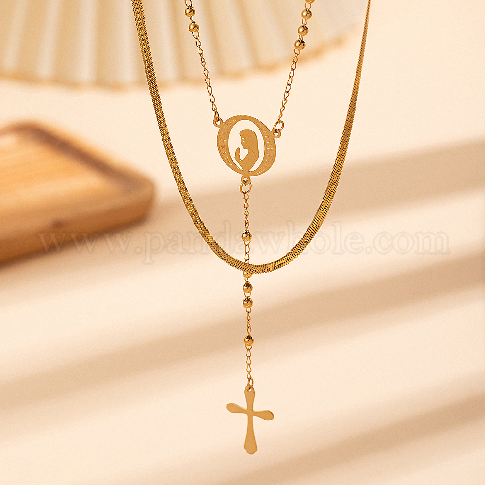201 цепочка из нержавеющей стали с двумя рядами змеиных костей, портретная кисточка, крестик с подвеской, ожерелья из четок для женщин