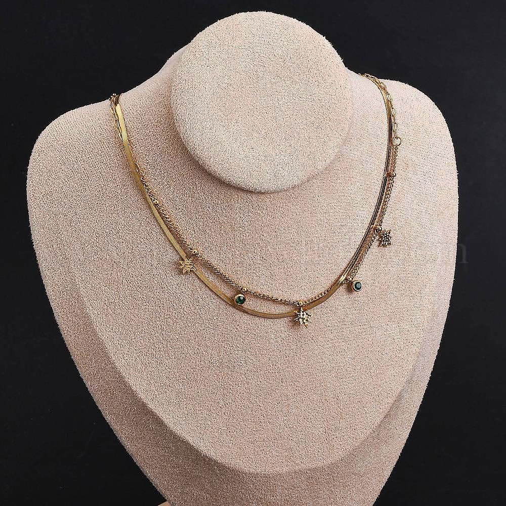 304 двухслойные ожерелья из нержавеющей стали со стразами, цветок нагрудник ожерелья, ионное покрытие (ip)