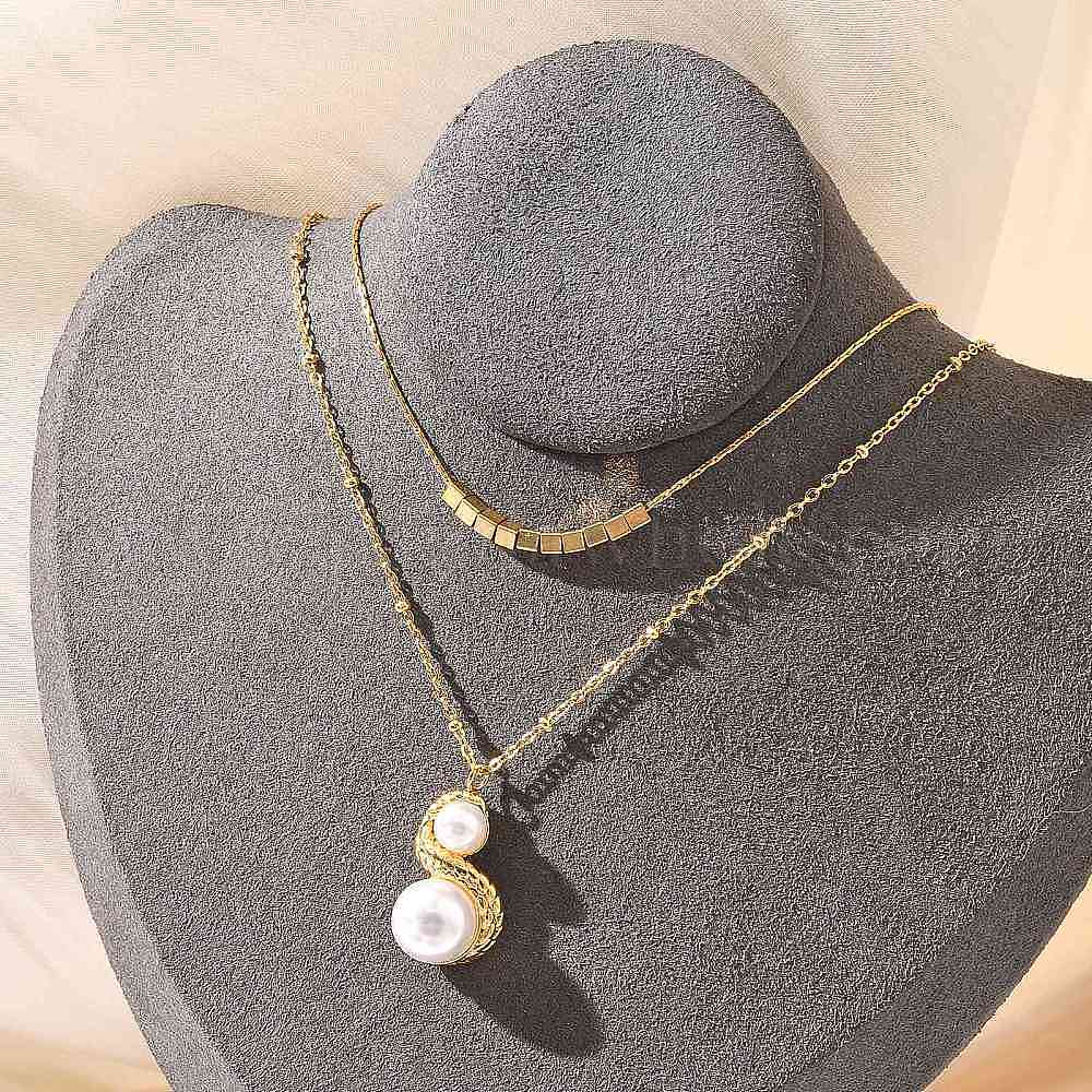 304 двухслойные колье из нержавеющей стали, пластиковый искусственный жемчуг 2 ожерелья с круглыми шариками для женщин