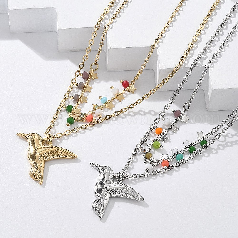 304 двухслойные ожерелья из нержавеющей стали и разноцветных стеклянных бусин, ожерелья с подвесками в виде птиц для женщин