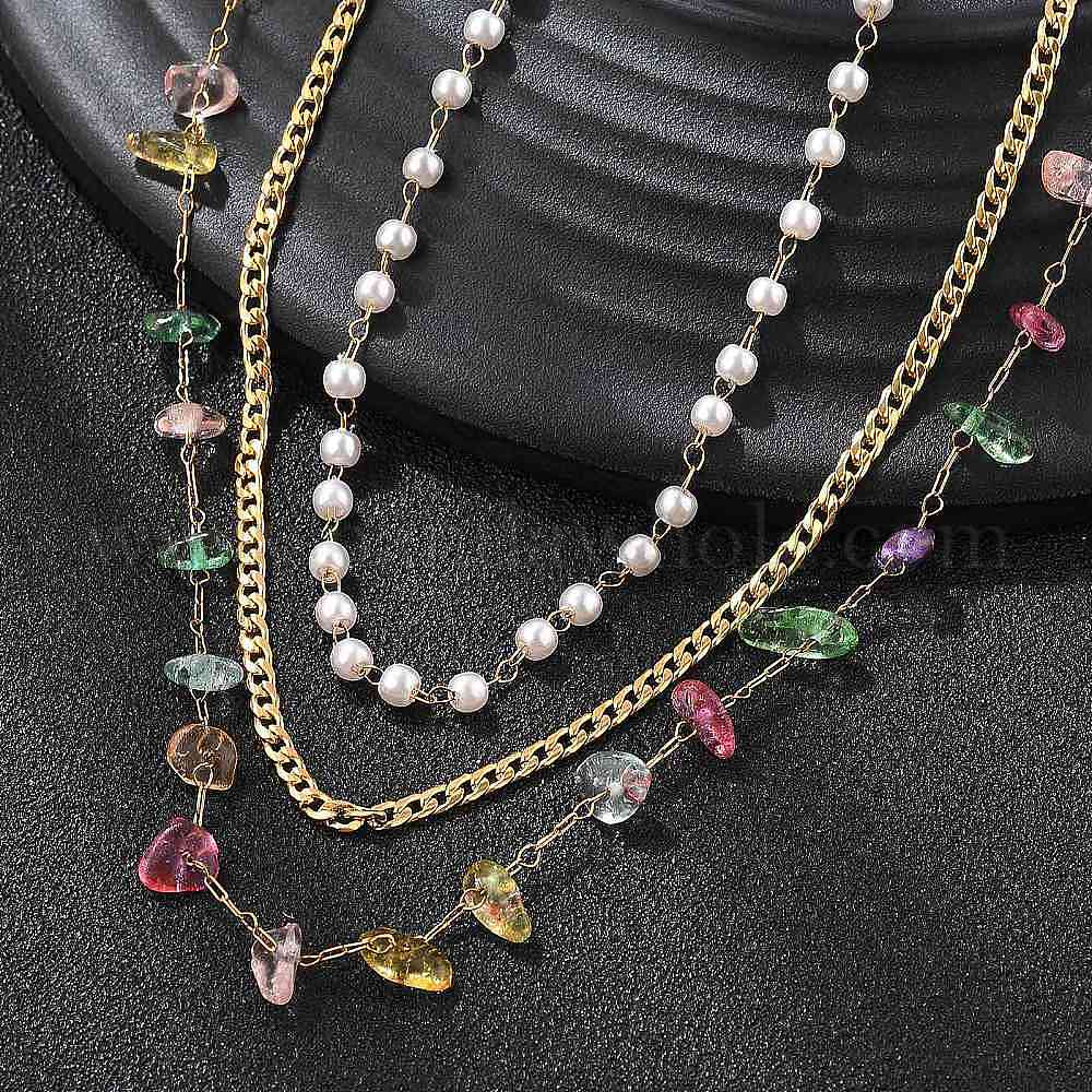 304 нержавеющая сталь и разноцветная крошка натурального камня и искусственный жемчуг 3 многослойные ожерелья для женщин