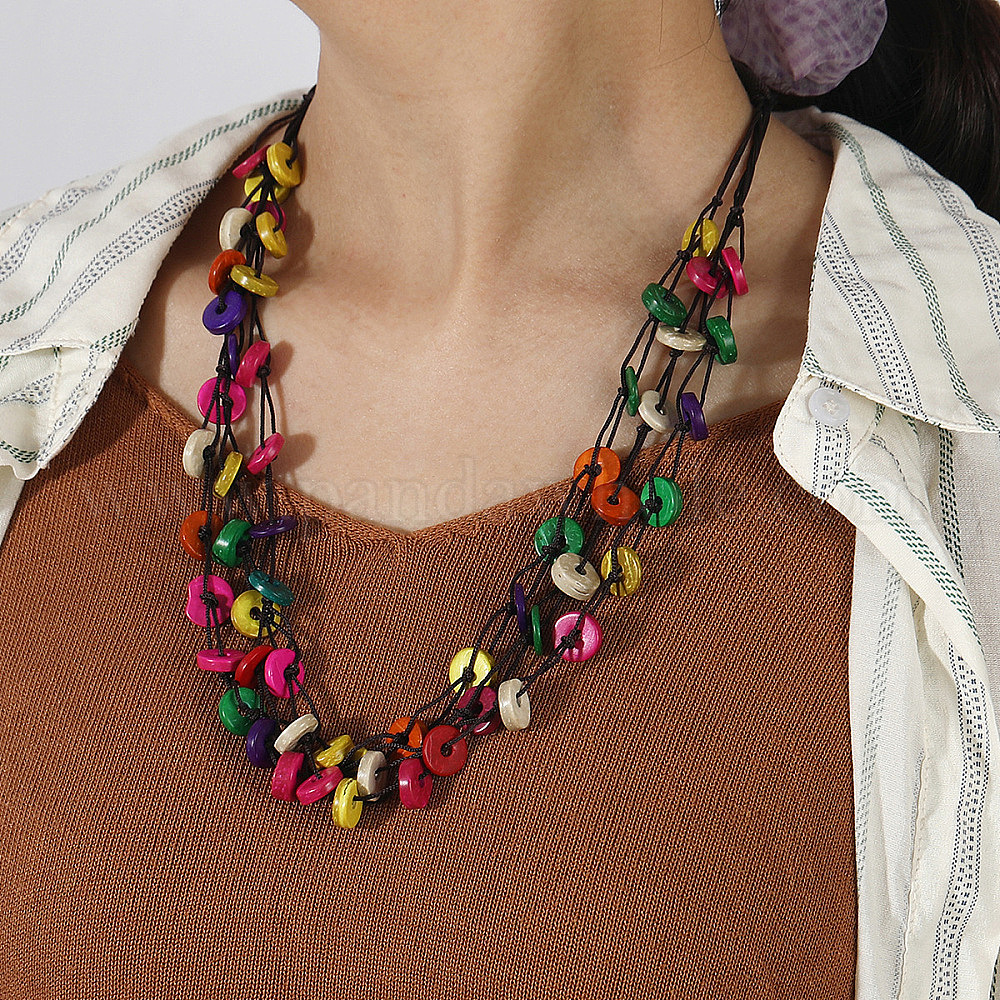 Этнический стиль окрашенный кокосовый диск бисер 3 многослойные ожерелья для женщин