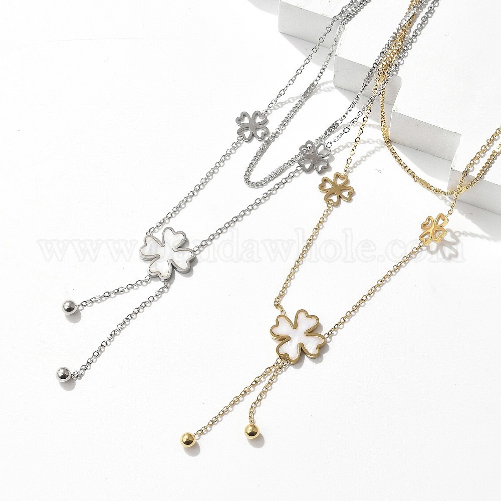 304 двухслойные ожерелья из нержавеющей стали с жемчужной кулоном в виде клевера для женщин, белые