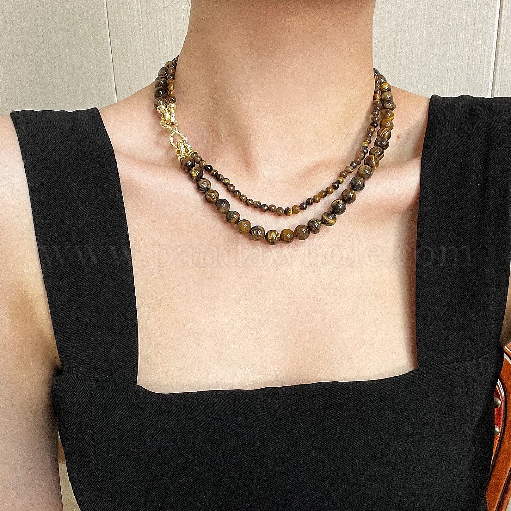 Ожерелья из круглых бусин с натуральным тигровым глазом, двухслойные