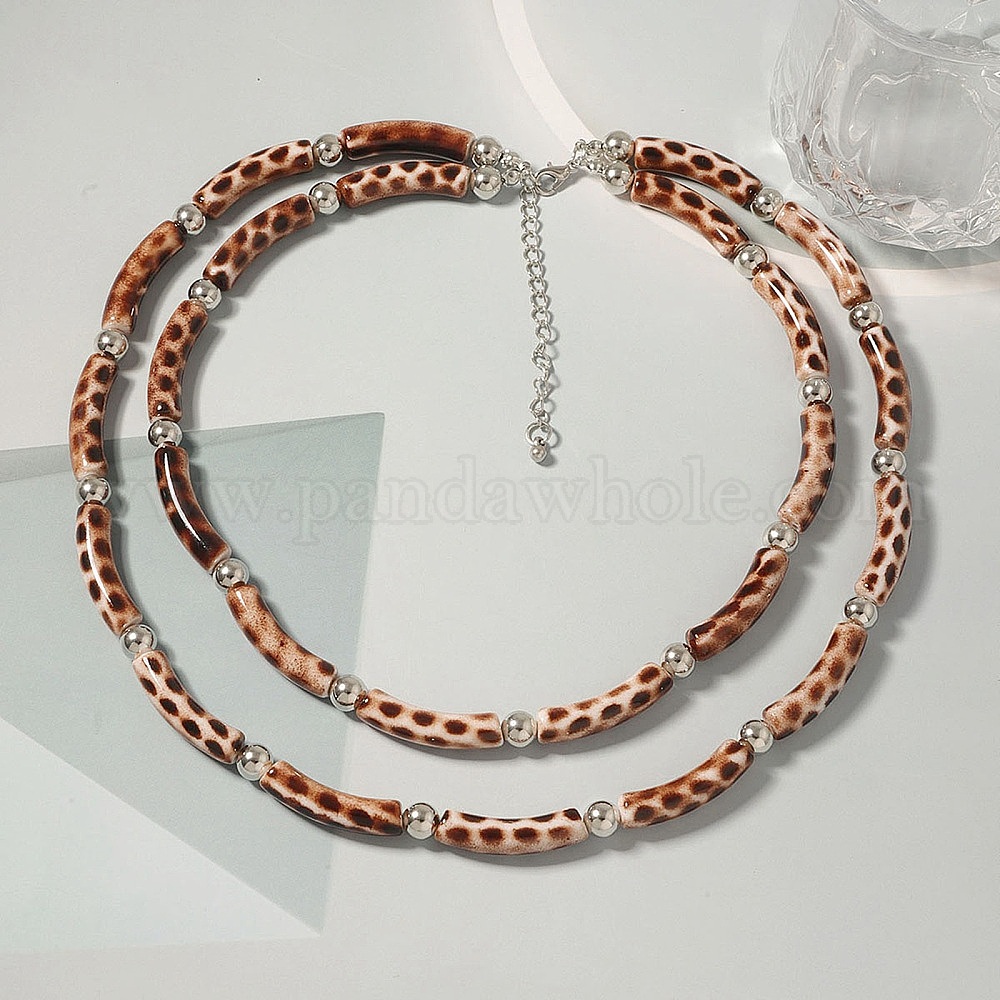 Пластиковые и смоляные изогнутые трубчатые двухслойные ожерелья с принтом под леопардовую кожу для женщин, платина