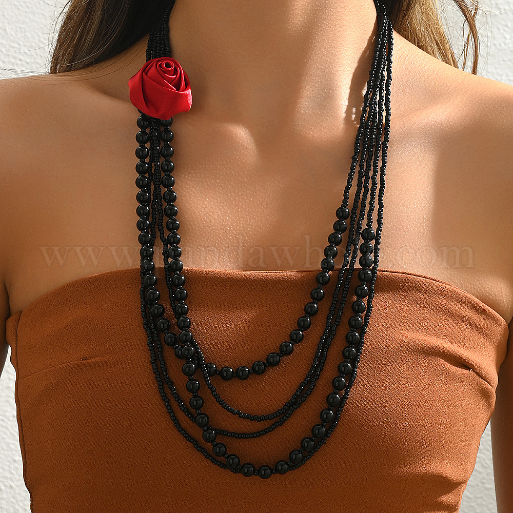 Элегантные пластиковые многослойные бусины с красным цветком подвески ожерелья для женщин