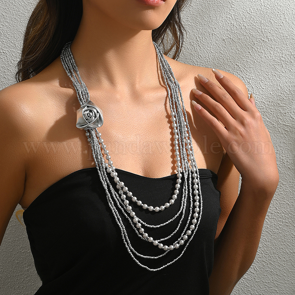 Элегантные многослойные ожерелья из пластиковых бусин и цветков из ткани для женской вечеринки