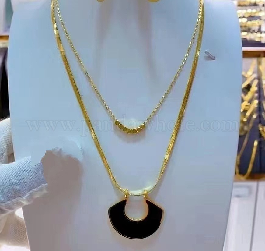 304 Двухслойные ожерелья из нержавеющей стали с акриловым кулоном в форме буквы U, чёрные