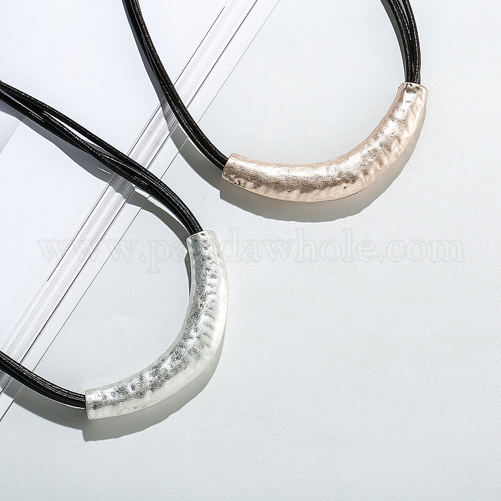 Подвеска в виде изогнутой трубки из сплава, многорядное ожерелье на черном шнуре для женщин.