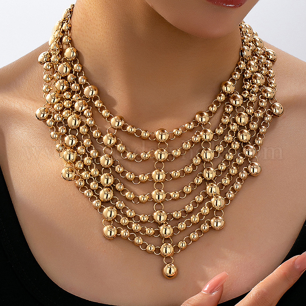 Ожерелья из круглых бусин из сплава, многорядные