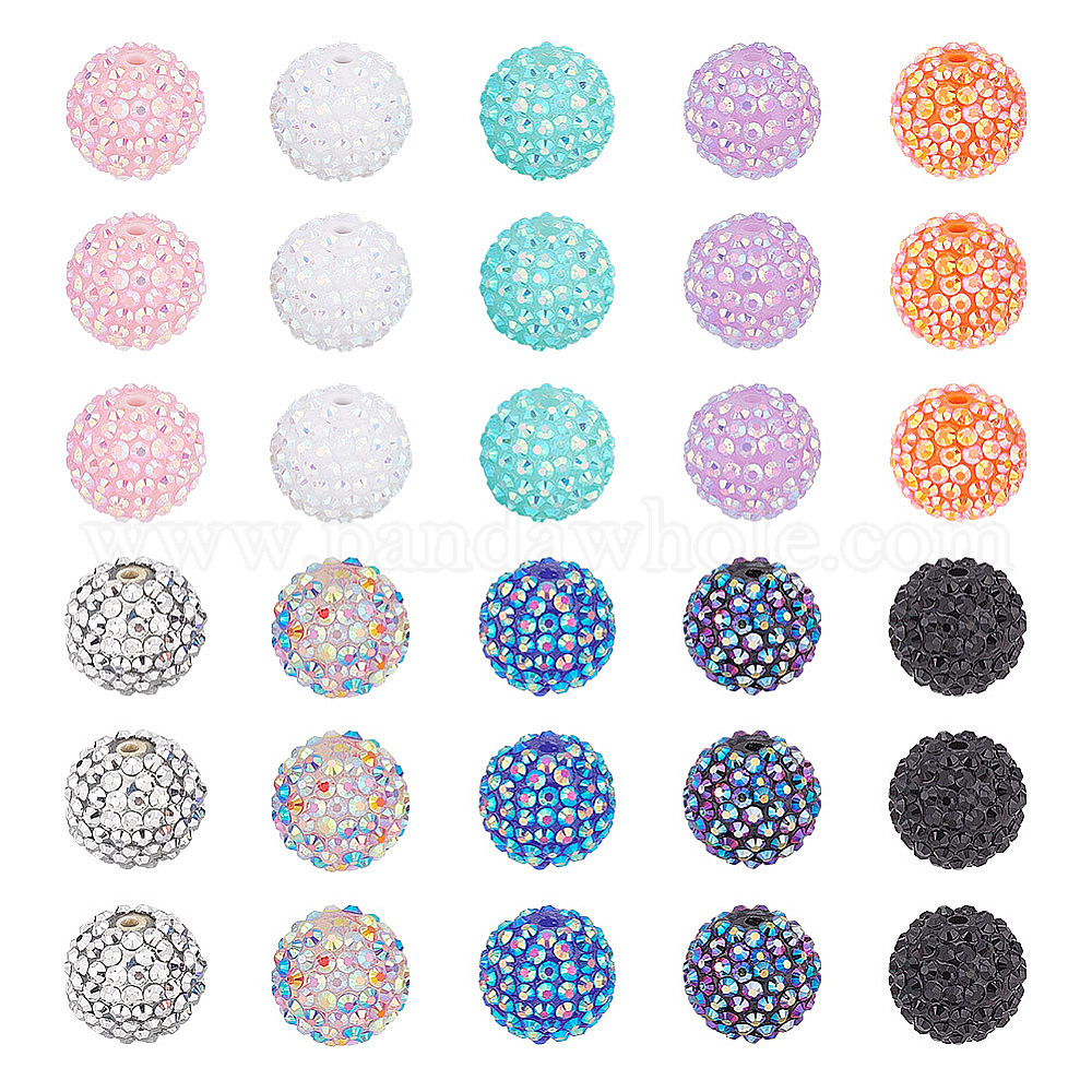 40шт 10 цвета смолы бусины со стразами, с акриловыми круглыми бусинами внутри, для жевательной резинки ювелирных изделий