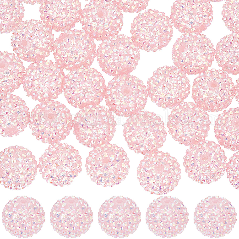 • Pink 40 бусины со стразами из смолы, с акриловыми круглыми бусинами внутри, для жевательной резинки ювелирных изделий, розовые, 20x18 мм, отверстие : 2~2.5 мм