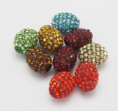 Бусины со стразами из смолы, овальные, 12x10 мм, отверстие : 1.5 мм