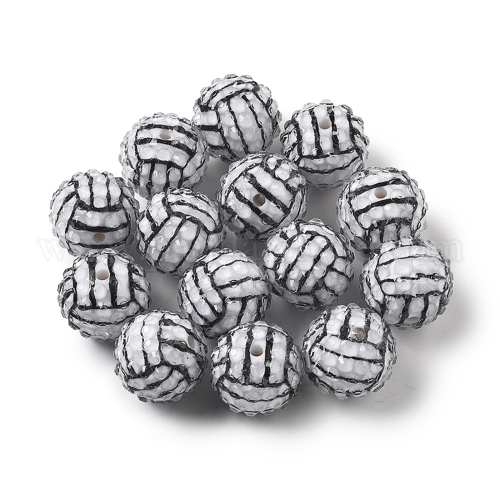 • Белый Бусины из смоляных стразов на спортивную тематику, с акриловой, волейбол, белые, 20 мм, отверстие : 2.5 мм