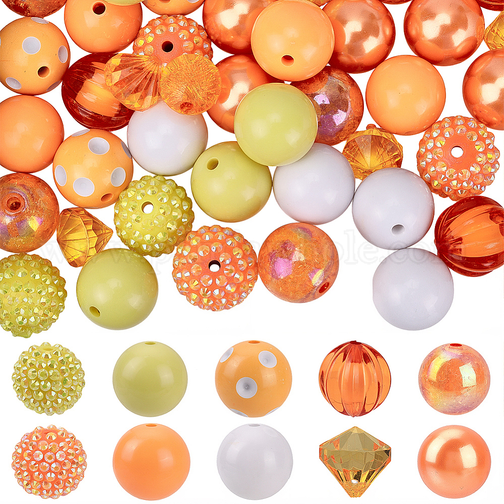 60шт 10 стили смоляные стразы бусины, с акриловыми круглыми бусинами внутри, для жевательной резинки ювелирных изделий