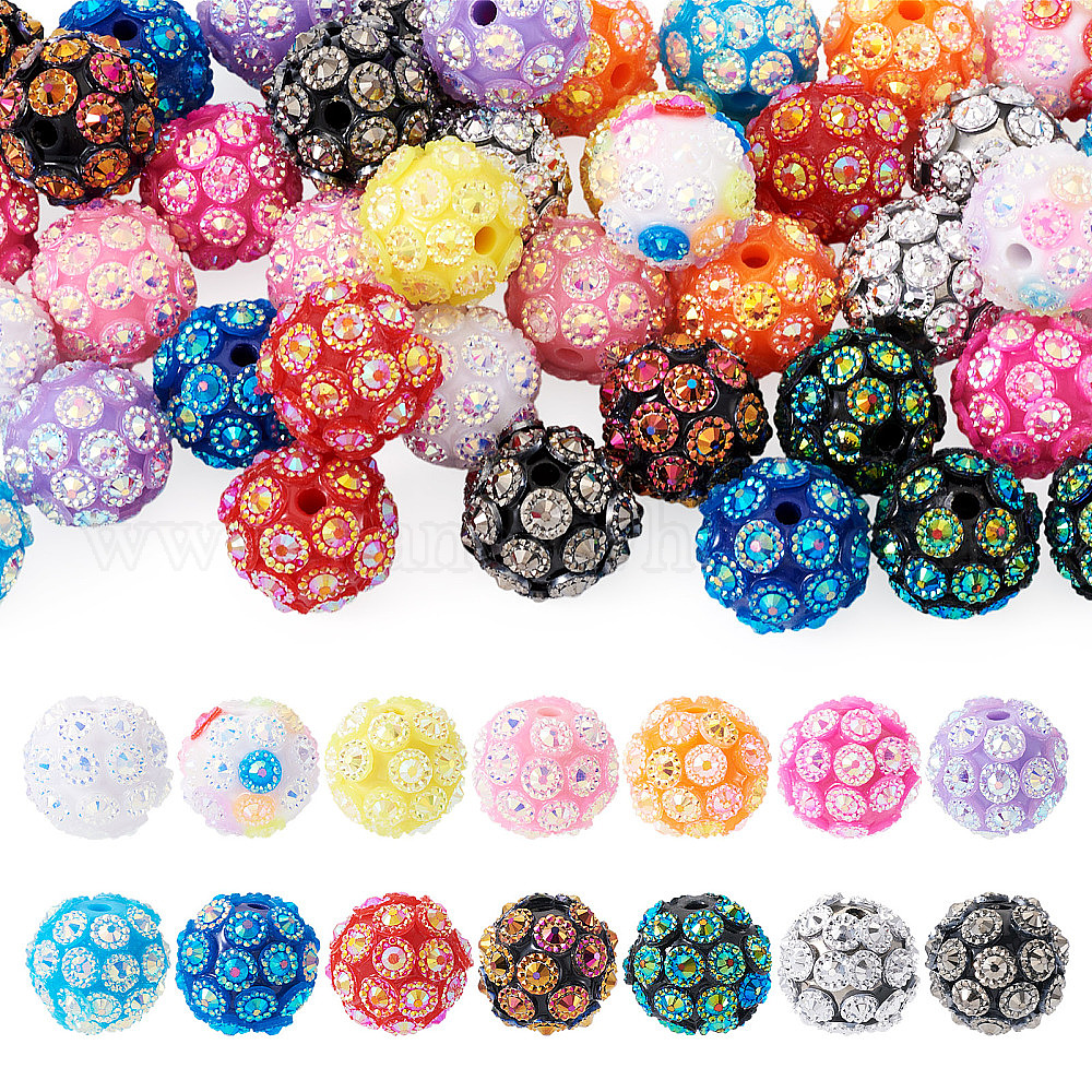 42шт 14 цвета смолы бусины со стразами, круглые