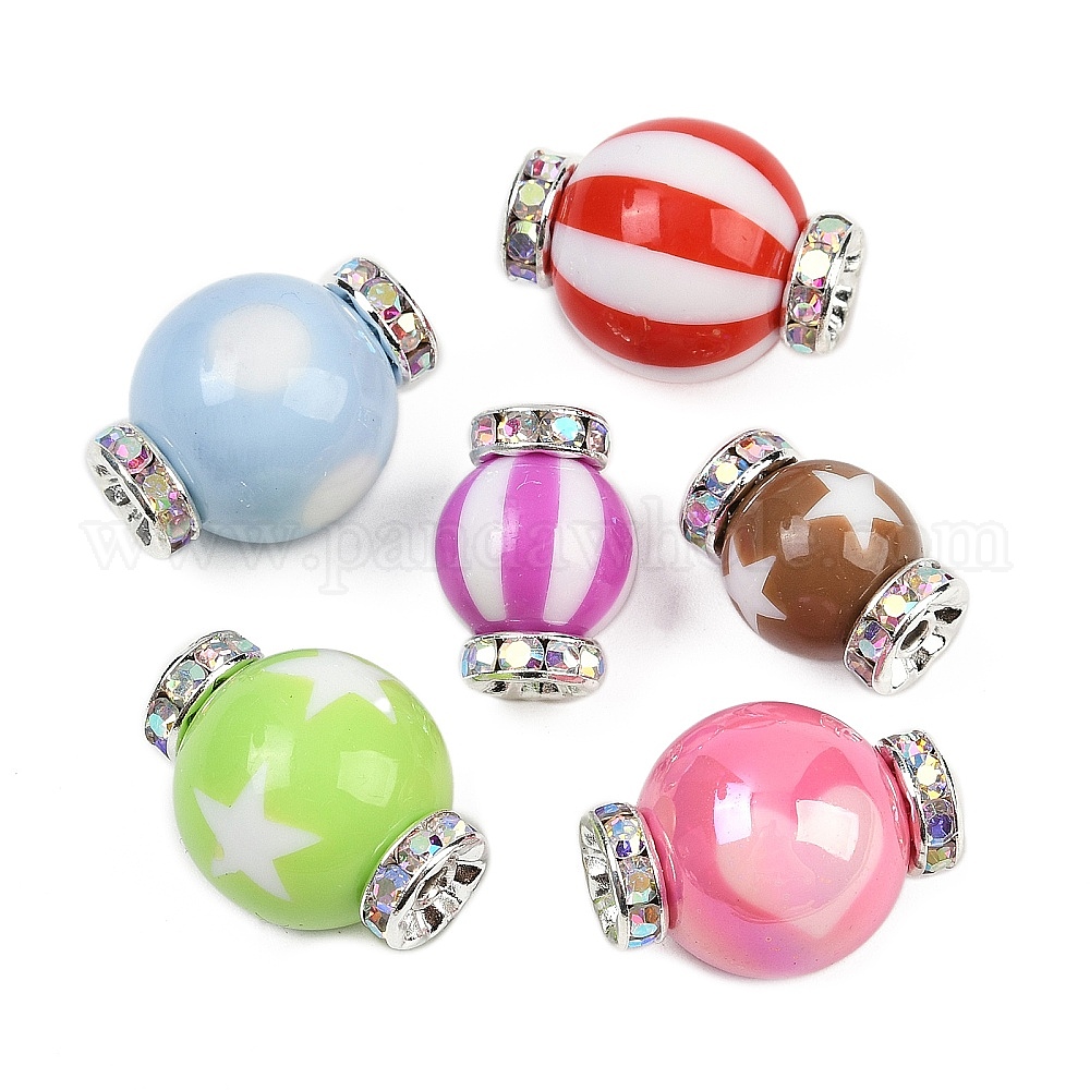 Бусины со стразами из смолы, конфеты, с латунной фурнитурой (035S84)
