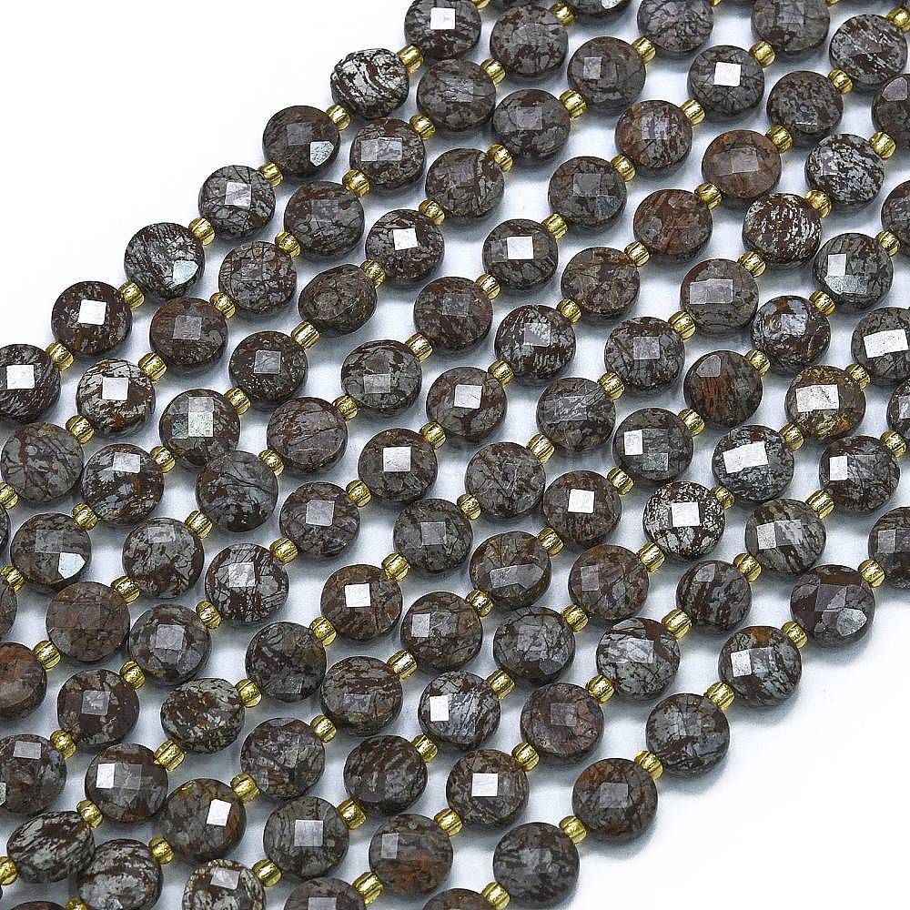 Натуральный красный снежинка обсидиан бисер прядь, с бисером, граненые, плоско-круглые